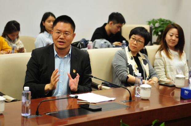 图为附属舞蹈学校党总支康路副书记介绍虹桥路校区党建服务中心建设情况