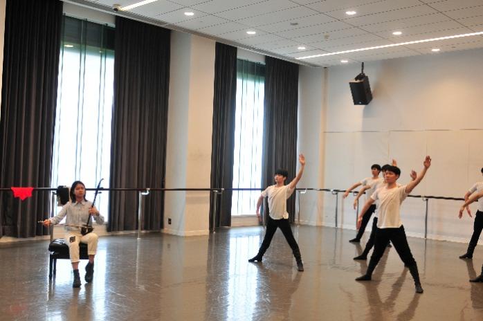 四月的上海国际舞蹈中心春意盎然,校园里一派朝气蓬勃的景象。上海音乐学院民族音乐系党支部一行首先来到舞蹈学院教室,观摩了民间舞课堂教学,上音学生现场二胡演奏《鸿雁》,与中国舞表演专业学生开展课堂上的即兴互动。课堂上舞院同学们灵巧的身韵、洋溢着青春的笑容也给民乐系师生留下了深刻的印象,同学们都很期待音乐与舞蹈的深入合作与交流。