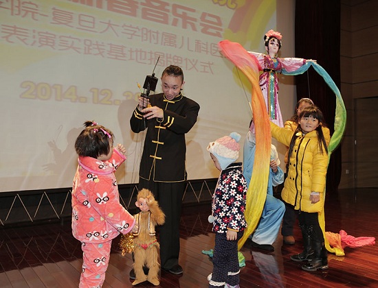这是儿科医院连续第三年为患儿举办新春音乐会。当晚的音乐会上,上海戏剧学院——复旦大学附属儿科医院木偶专业表演实践基地揭牌,这意味着传统的木偶剧正式落户儿科医院。今后,深受小朋友喜欢的“孙悟空”、“黑猫警长”等形象将以木偶剧的形式出现在病房,为患儿们带来欢乐。上戏学院木偶专业的同学将以儿科医院为实践课堂和流动舞台,每月一次走进病房表演,并手把手教患儿学木偶。此外,上戏学院将每一个季度组织一场大型演出,向患儿送上木偶剧、音乐剧等经典文化大餐。