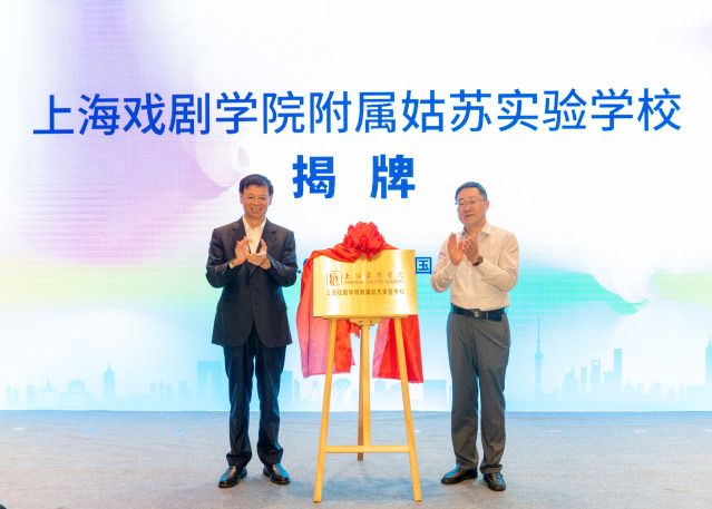 协议签署后,江苏省省委常委、苏州市市委书记许昆林和上海戏剧学院党委书记谢巍共同为上戏附属姑苏实验学校举行了揭牌仪式。双方将从素质教育特色品牌打造、艺术教育整体品质提升、师资队伍外引内培以及课程内涵建设等方面共同助力附属学校建设,做强上戏基础教育品牌。