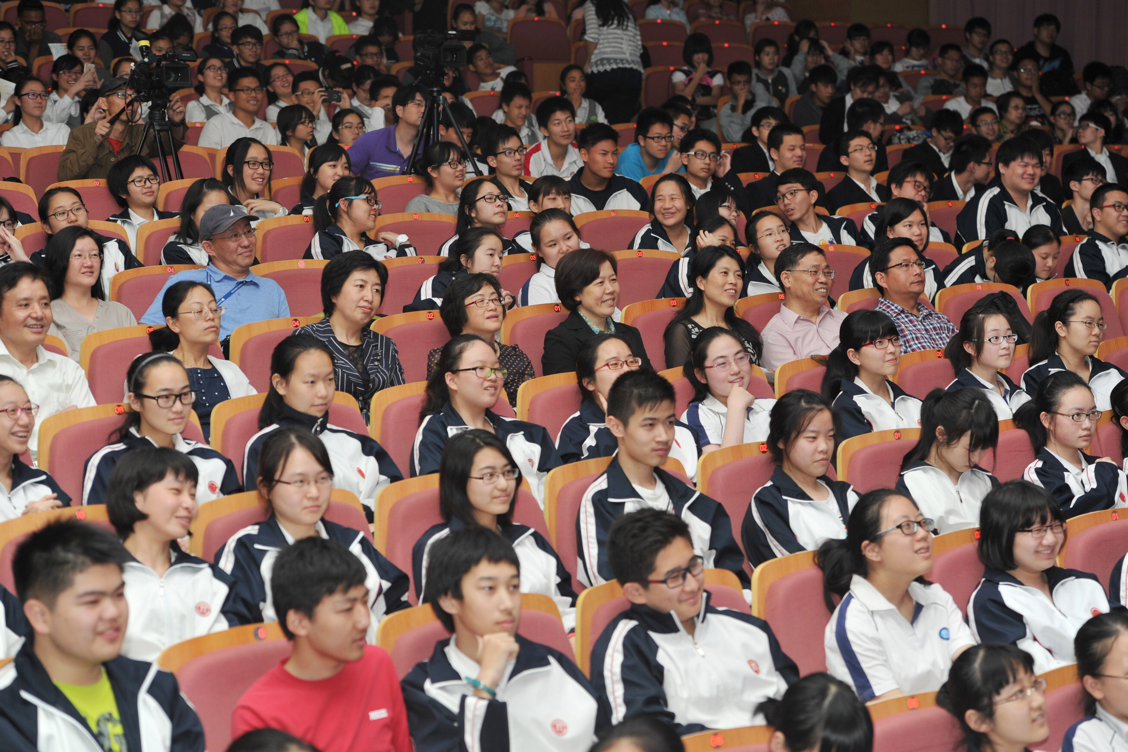图为领导与来自各所重点高中的学生观看演出