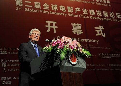美国电影协会主席克里斯多弗·J·多德在发言中,对即将迎来七十周年校庆的上海戏剧学院送上了祝福,他表示在互联网时代中美电影行业将会有更多的合作,特别是在内容制作与品质方面都会产生巨大的益处,在电影产业的互联网时代下,中国电影产业未来的潜力无穷,而当今的学子正处在这样一个黄金的时代,充满了来自全球的机遇,而能在上海戏剧学院学习与成长,是一件非常荣幸的事情。上海市文化广播影视事业管理局的胡劲军局长则代表政府部门对来自全球支持上海电影节与电影产业发展的朋友们表示了感谢,并从资金支持、金融税收、园区规划、人才培养、区县联动等方面,解析了政府从各个方面对电影产业的扶持,提出了三点思考:1.上海电影未来要积极、主动与互联网融合,要重视互联网新兴行业对电影产业产生的影响。2. 上海要发挥地域文化优势,推动中外合拍片的发展,中外合拍是未来上海电影发展的重点。3.上海将继续重视人才引进和人才培养,改善上海电影产业人才的布局。而上海戏剧学院的韩生院长则从艺术院校对于电影业人才培养以及电影实验创新的角度,解读了在当下互联网电影时代,艺术院校的责任与担当。