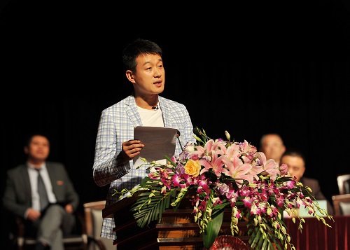 图为校友代表佟大为发言