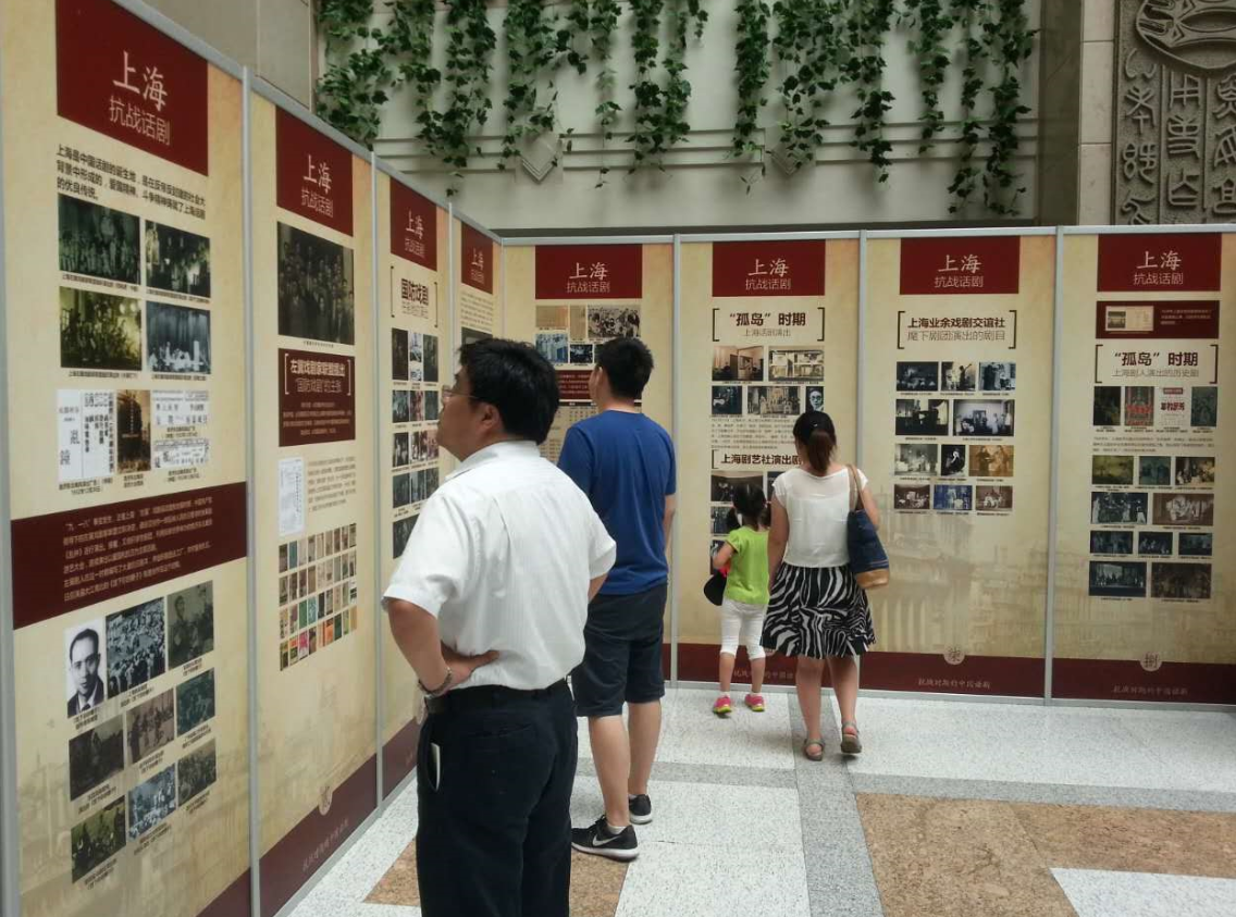 为纪念抗日战争暨世界反法西斯战争胜利七十周年,戏剧博物馆的工作人员放弃暑假休息,经过三个月的精心准备,于九月一日在上海图书馆举办了《文化抗战:民族危亡中的中国话剧》大型图片展。展览以上海、武汉、重庆、桂林、延安五个抗战话剧演出最具代表性的地区为例,通过四百多幅老照片和几十张珍贵的抗战期间话剧演出的宣传单,记录了从1931年“九·一八”日本帝国主义侵略中国到1945年抗战取得最后胜利期间,中国话剧人团结一致,用勇气、热血和智慧与全国军民一起共同抵御外敌的民族精神,也体现了中国共产党在文化抗战中所起到的主导作用。