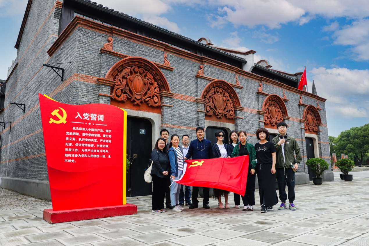 创意学院党支部的党员教师们走访了一系列红色题材影视作品的外景地,如:《新青年》“编辑部”、一大“会址”、南湖“红船”、二大“会址”等。在庆祝中国共产党成立一百周年献礼影片《望道》的拍摄场地,大家重温了陈望道一边蘸墨水吃粽子,一边翻译《共产党宣言》却连连说“甜””的生动故事。随后,支部党员们还分别拿起“蓝皮本”(指第二次印刷的陈望道翻译的《共产党宣言》全译本),轮流诵读了其中的片段。在著名的“上海大戏院”,大家则观赏了根据《开天辟地》《红色娘子军》《铁道游击队》《渡江侦察记》《建国大业》等红色电影剪辑而成的《红色光影录》,追寻1921-1949年的红色记忆,感受中国共产党人不变的初心与信念。