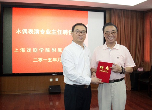 2015年9月28日下午,木偶表演专业主任聘任仪式在我校图书馆四楼会议室顺利进行,出席聘任仪式的领导有上海戏剧学院副院长、校长郭宇,副校长侯永强、副书记刘爱香,影视表演专业教研室负责人王海燕、孟真宇,以及音乐剧专业教研室负责人张健、陆保程,同时邀请上戏戏曲学院副院长黄暾炜、副书记刘春友、木偶专业副主任万红以及我校聘请的木偶表演专业主任赵根楼老师参加了会议,会议由教导科科长胡根夫主持。