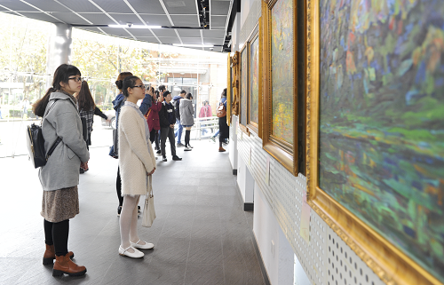 图为我校学生观看展览