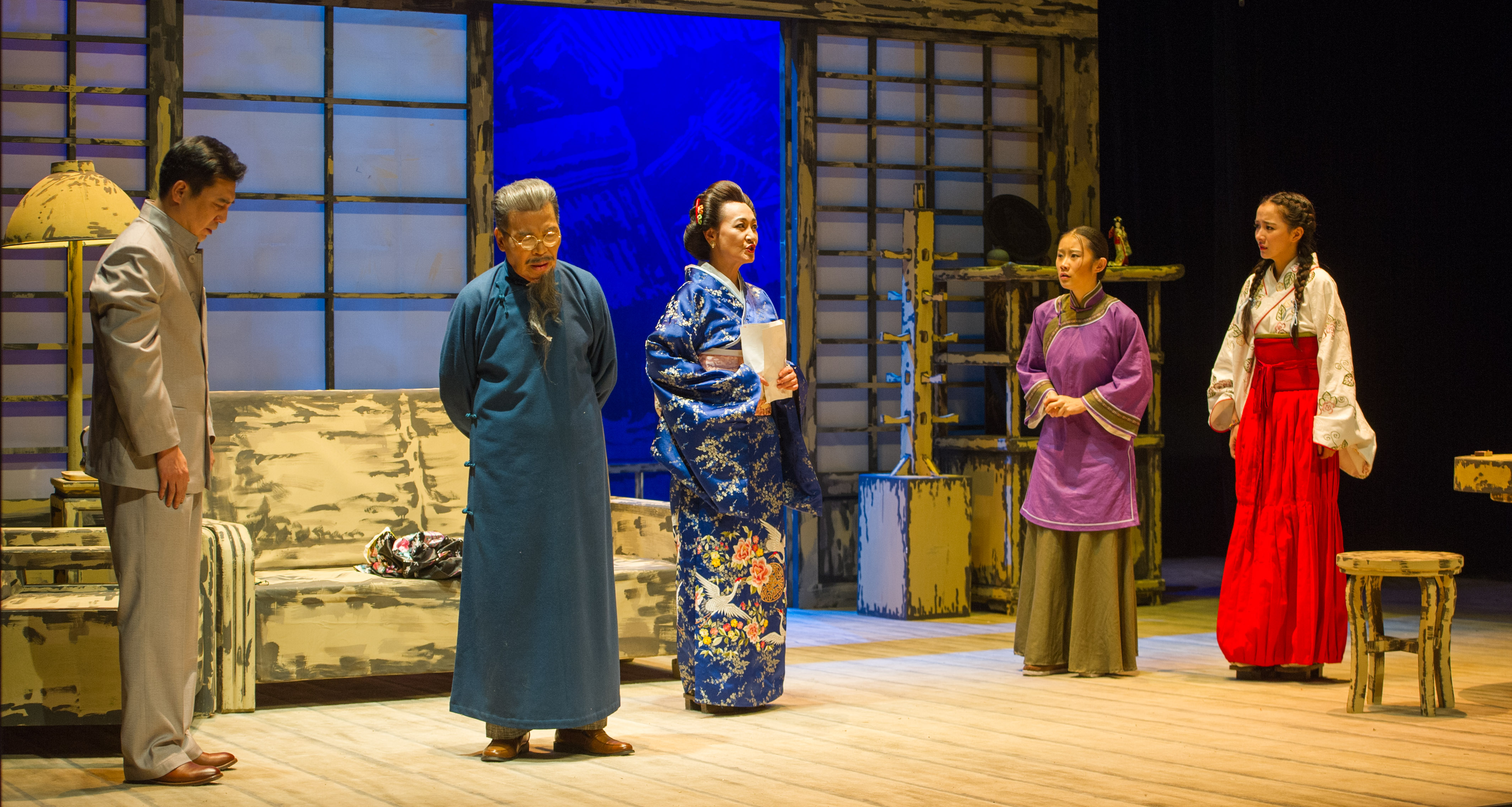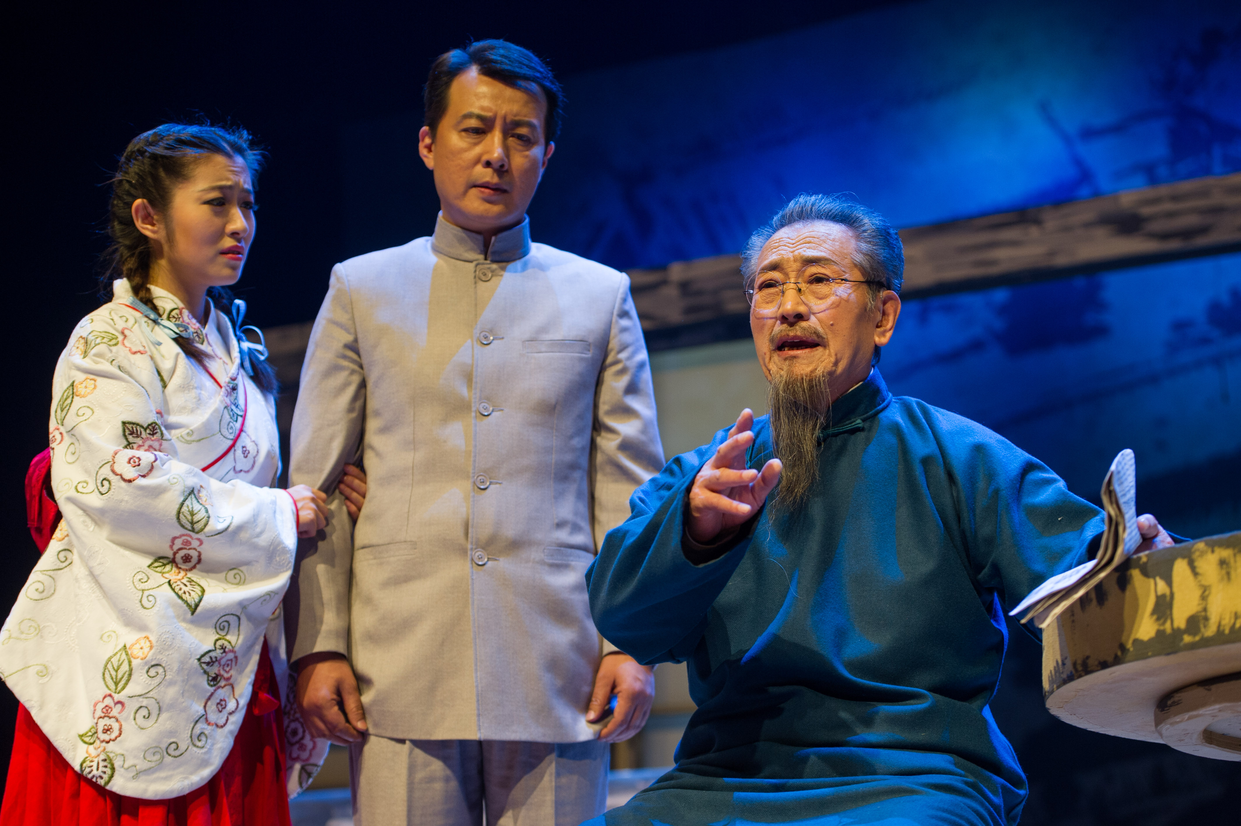两位父亲唐华庭的扮演者,都是耄耋老人:四十年代入学的邵宏来老师和五十年代的娄际成老师。邵老师曾演绎过的著名银幕形象如:陈独秀、李宗仁,他已多年未登台,此次老人家是为荣誉而来。娄际成老师的认真投入相信是无人可比的。他在话剧舞台早已驰骋半个多世纪,成功塑造了孙中山等无数具有鲜明人物形象的角色,可谓是沪上话剧的第一人。六十年代毕业的刘玉老师当年曾主演《战斗的青春》,名噪一时,此次饰演第一、三幕的母亲秋子。从万里之外的大洋彼岸赶回参加剧组创作的她,从开始直至工作排演一直全身心投入,充分显示了一位职业演员的敬业精神。