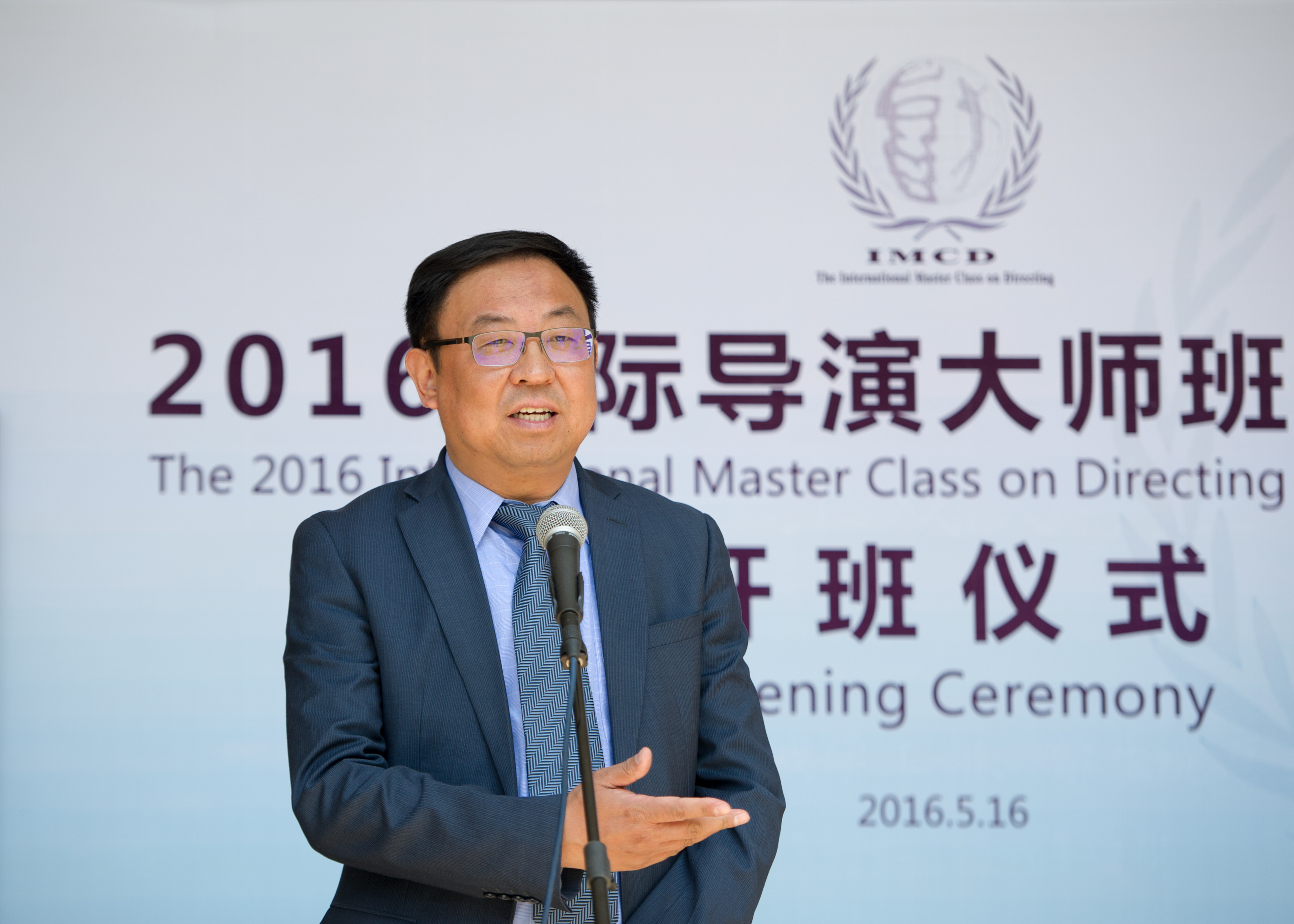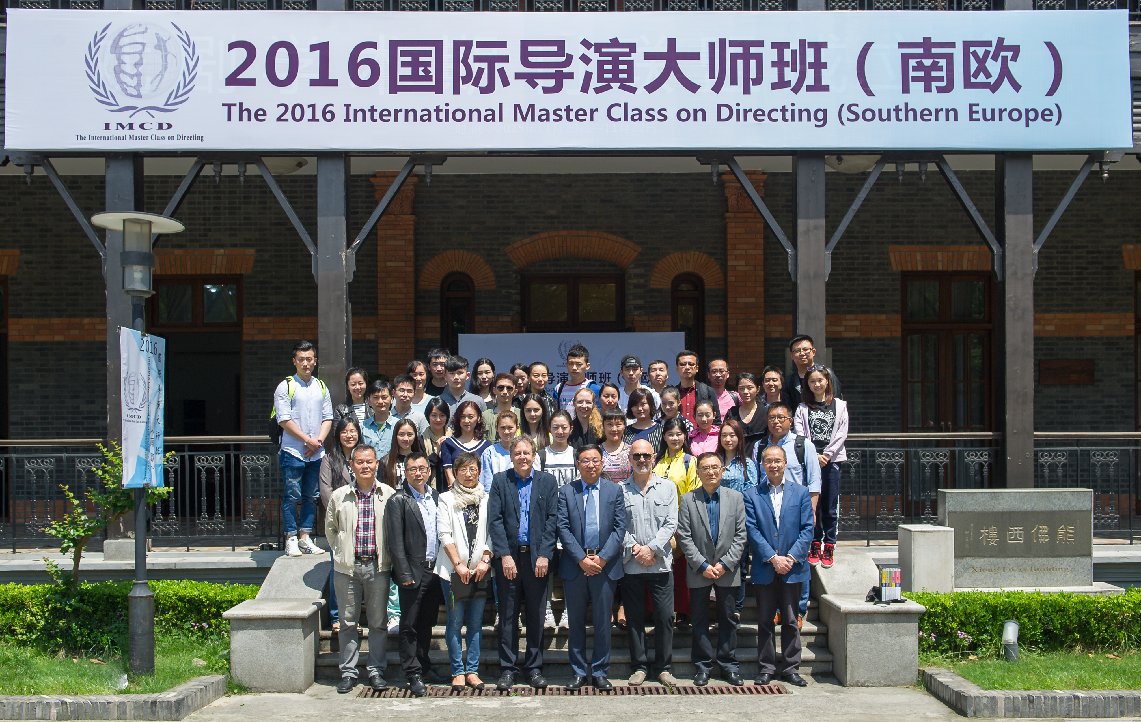 5月16日上午10点,阳光明媚,2016国际导演大师班开幕仪式在佛西楼前广场隆重举行。上海戏剧学院党委书记楼巍、国际剧协总干事托比亚斯、上海文化基金会秘书长郦国义、上海戏剧学院副院长宫宝荣、导演系主任卢昂,外国专家代表希腊国家戏剧学院艺术总监、总导演斯塔西斯•利瓦西诺斯以及本届大师班的全体学员和表导演系的研究生代表出席了开班仪式。开幕式由宫宝荣副院长主持。