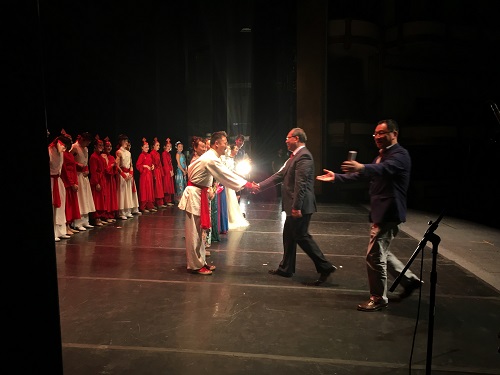 城市剧院演出后大使上台与演员握手