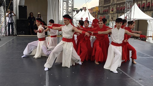 演出团抵达墨西哥城后,于5月31日在宪法广场举行了一次公益性的广场活动。当天虽然天气炎热,但随着演出的不断深入,观众被嘹亮歌声和优美的舞姿吸引,不断聚集,达到近两千名观众。台上演出精彩,台下人头攒动,互动热烈,掌声不断。在演出结束后,观众更是久久不愿离去,纷纷要求与演员合影留念。尽管语言不通,但观众的热情表达了他们对演出的喜爱,也感动了上戏的师生演员们。他们觉得能在墨西哥这片土地上传播中国文化,是一次难得的文化之旅,倍感自豪。