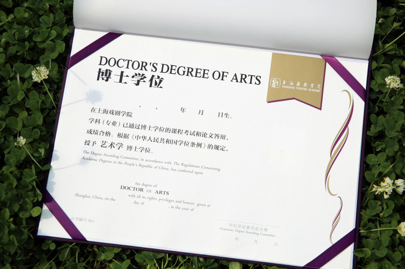 据设计者之一陈晔老师介绍,新版证书包括了博士学位证书、硕士学位证书、学士学位证书、毕业证书四种封套,内含本科、成教学士证书和MA、MFA硕士证书以及博士证书五种内芯。学士学位封套采用学士蓝色,硕士、博士上戏紫色。毕业证书均采用中国红的亚光布,文字图案烫金,设计上力求简洁大方,同时也不失厚重。 每张证书内芯还有专属的紫外线防伪图案。(文:宣传 图:程树森 编辑:榕树)