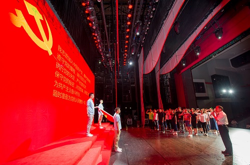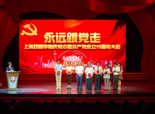 誓词铿锵,歌声嘹亮。6月29日下午,永远跟党走——上海戏剧学院庆祝中国共产党成立95周年大会在上戏实验剧院举行。校领导楼巍、胡敏、黄昌勇、宫宝荣、张伟令、郭宇以及各党支部党员代表在台下就座。大会由党委副书记胡敏主持。