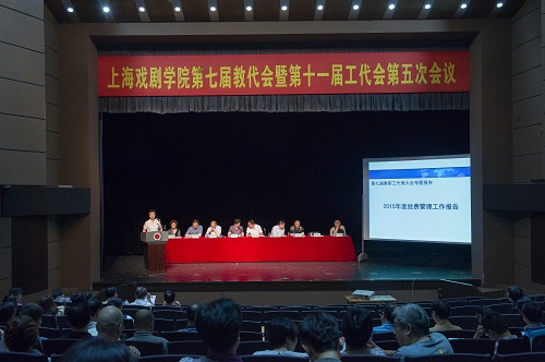 大会首先在庄严的《国歌》声中开幕。党委书记楼巍同志作《2016年上海戏剧学院工作报告》(以下简称《报告》)。报告回顾和总结了2015年学校教学、科研、演出、发展和管理的总体情况。肯定了学校一年来的发展面貌和取得的成绩,提出2016年的重点工作任务,并提出了学校十三五发展的基本考虑,为学校的发展指明了方向。