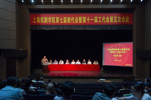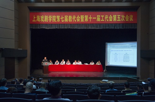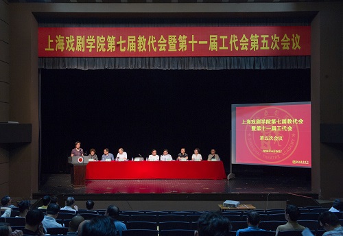 图为楼巍书记作《2016年上海戏剧学院工作报告》