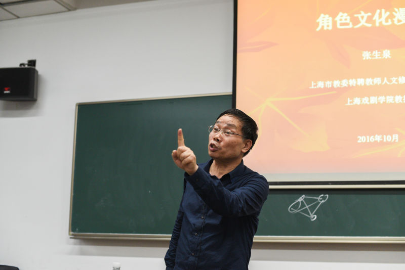 张生泉教授为学员送上了精彩一课。他表示,如何让艺术角色和生活角色交相辉映,尤其是把艺术的审美情感变为社会的建设之力,是一个极具现代意义的文艺社会学课题。在短短一个半小时的授课中,他旁征博引,谈古论今,理论联系实际,赢得了学员的阵阵笑声和掌声。本次课程还系创想周的公开课堂,吸引了大量创想周观众驻足流连,取得了不俗的反响。