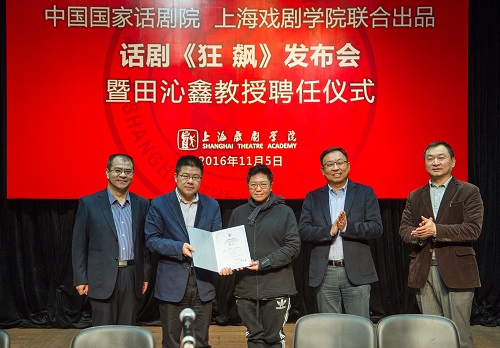会上,黄昌勇院长为田沁鑫教授颁发聘书。根据聘期计划,我校将聘请田沁鑫为表演系教授,每1-2年内,为学校执导一部毕业大戏,每年不少于2次讲座,带1-2名MFA研究生,并参与表导演专业的建设。与此同时,我校将与国家话剧院合作,共同打造2017届表演系毕业班毕业公演——话剧《狂飙》,由田沁鑫导演执导。该剧讲述的是中华人民共和国《国歌》的词作者田汉、作为一个真正的大艺术家鲜为人知的心路和情感历程。