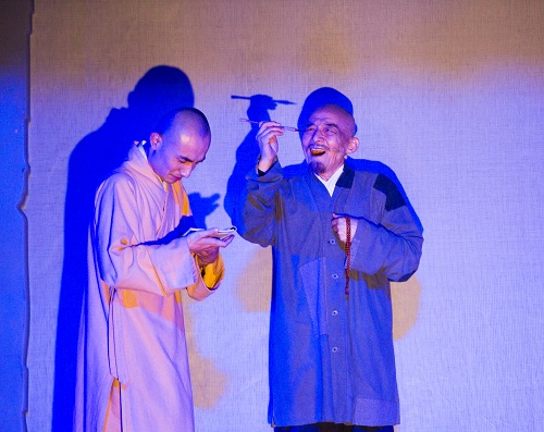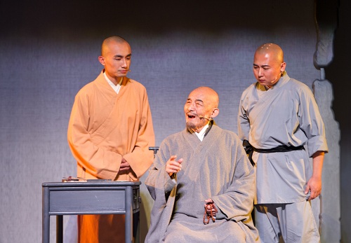 本剧充满着禅意,大幕尚未拉开,悠悠的《送别》声便以将观众的心神带到了弘一法师的身边。这一段音乐伴随着演出不断反复地出现,仿佛弘一法师在送别从前的自己,而我们在目送着弘一法师驾鹤西去。和这段音乐一样,全剧的情节很淡,但却淡出了一种深远的境界。弘一法师看透了人生,“生死不过是人类必须经历的东西”,淡然处之,未尝不是一种诗意。