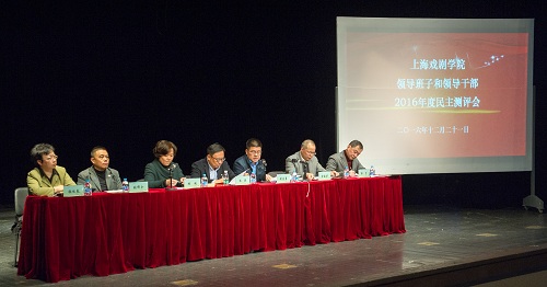 2016年12月21日中午,我校领导班子和领导干部2016年度民主测评会在端钧剧场举行,会议由党委书记楼巍主持,党政领导班子出席。全体中层干部、党代表、教代表、教授、职工代表、民主党派代表以及离退休代表等参加了测评会。