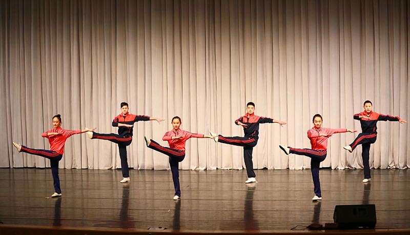 图为戏曲韵律操现场展示