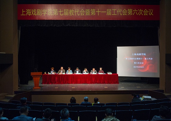 4月15日,上海戏剧学院第七届教代会暨第十一届工代会第六次会议圆满落幕。学院全体党政领导在主席台就坐,会议由工会主席、副院长张伟令,专职副主席王苏分别主持。