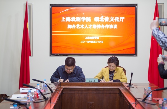 2017年4月26日上午,我校与湖北省文化厅就戏剧艺术人才培养协商合作事宜。湖北省文化厅党组书记、厅长雷文洁,与学院院长黄昌勇签署了双方合作协议。学院副院长郭宇同教务处、演艺中心与对方艺术与科教处就具体工作进行了初步商讨。