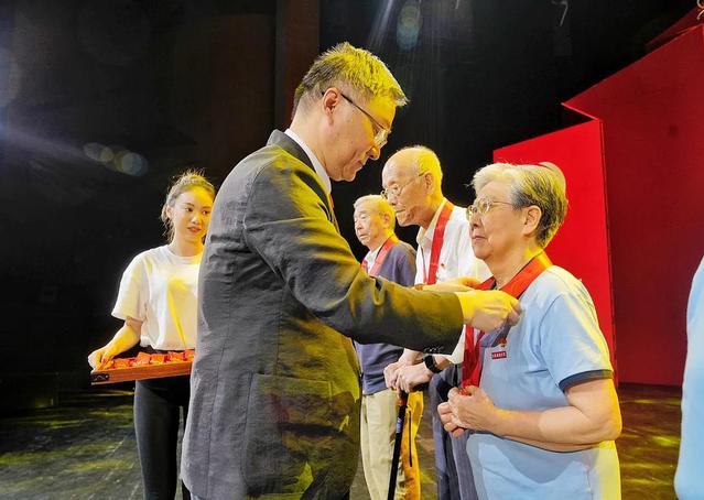 当校领导为老党员们逐一戴上纪念章时,全场爆发出热烈的掌声,大家由衷地向这群为上戏建设与发展奉献毕生精力的老领导、老专家、老同志送上敬意与祝福。青年学生代表为老党员们献上了鲜花。