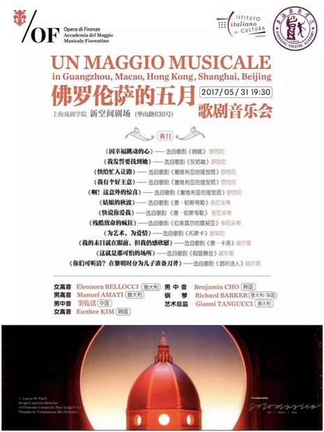 5月31日晚上19:30,由上海戏剧学院和意大利五月歌剧院音乐学院联合主办,由上海意大利文化研究所赞助的《佛罗伦萨的五月——歌剧音乐会》在上海戏剧学院端钧剧场隆重上演,为广大古典音乐爱好者们及上戏师生带来了一场精彩绝伦的视听盛宴。