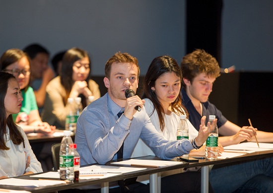 在学生交流环节,中法学生就自己所感兴趣的领域进行了深刻而活跃的交流。法国青年首先表达了对中国社会高度的文化自信力和强烈的文化认可度的讶异,以及对“中国梦”的概念的强烈兴趣。之后,法国青年向大家介绍了法国在知识创新和技术创新方面政策扶持和法律保护,介绍了有着悠久历史的“马术”在法国社会变迁中的保护和现状,我校的的何雨婷同学也向法国青年介绍了“马术”在唐代兴盛的历史背景。面对法国青年对当今上海戏剧创新的提问,我校的祝逸非、朱毓蛟同学向法国青年介绍了科幻舞台剧《三体》及其在舞美设计中的技术创新和进步,我校的胡笳同学则向法国青年介绍了中国戏曲的传承和演出情况,并以我校为例介绍了当代戏曲人才的培养过程。此外,法国青年对当今中国无现金社会的发展表现了浓厚的兴趣,同时也表达了法国社会对于“支付宝”等类似网络支付手段对于资金管理的不信任。与会的青年代表向法国青年介绍了支付宝在中国社会的发展过程和普及程度。除此之外,法国青年也向大家介绍了欧洲当下的政治状况,表达了对欧洲进行进一步的区域整合以及加深经济合作的信心,同时也阐述了在政治环境下的经济风险。