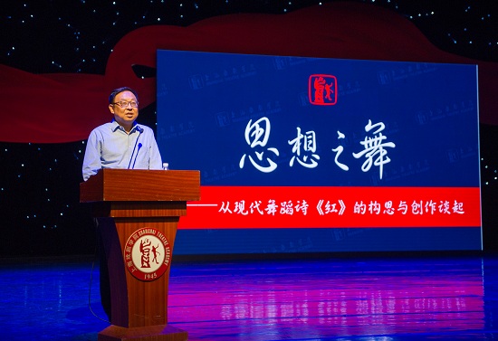 楼巍书记以中国共产党诞生90周年时,他作为编剧创作的现代舞蹈诗《红》的构思与创作为例,向同学们阐释了思想性在一个艺术形式中,尤其舞蹈艺术中的价值引领作用。