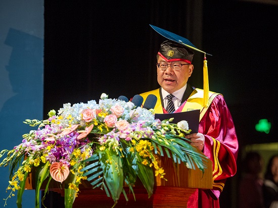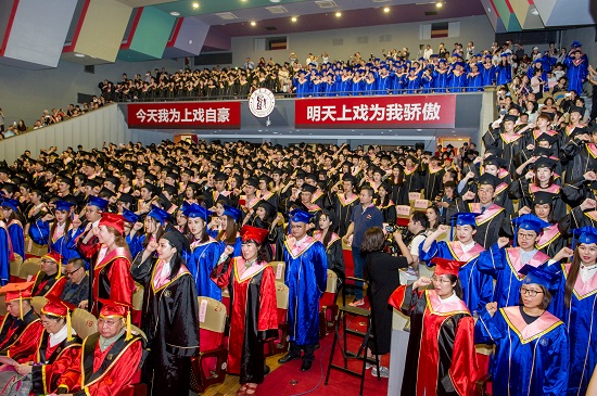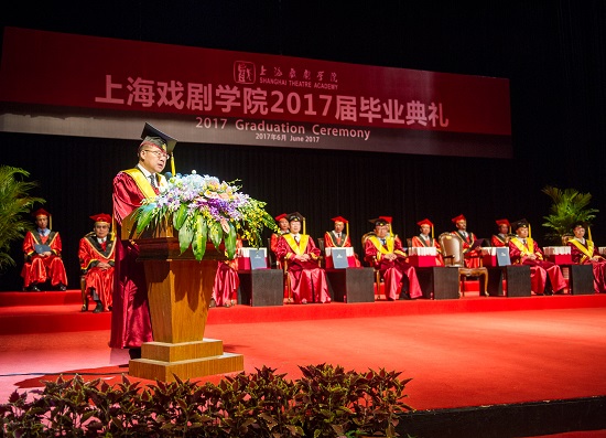 今天是上海戏剧学院2017届学生毕业庆典。我首先代表学校向各位毕业生,致以热烈的祝贺和衷心的祝福!祝贺同学们圆满完成学业。我还要感谢全体毕业生的家长,感谢你们选择了上戏,与我们一起陪伴同学们成长;我还要感谢全体教职员工辛勤的工作。同学们,在上戏的生活和学习,你们的机体内早已流淌着上戏的血液,你们的品格里,早已铺就了上戏的底色。我们今年毕业庆典的主题词:“你就是上戏”,我们相信,精彩只差时间,母校时刻准备着为你们点赞。