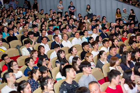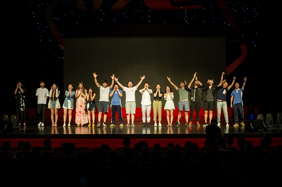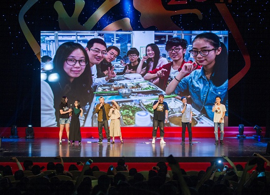 值得一提的是,校友、知名演员郭京飞也来到现场,令毕业生们惊喜不已,他以师哥的身份为大家带来的发言也令人倍感亲切。晚会尾声,七位校领导为全体毕业生朗诵了《时代》,与其说是领导,不如说是我们的“大家长”,因为他们无微不至地关心着我们的生活点滴,支持着我们的艺术梦想。诗歌中他们表达了对2013级毕业生四年辛勤学习成果的肯定,也对他们的未来给予了殷殷期待,而那句“做一个无愧于时代的上戏人”则是对每个上戏人的要求与鼓舞,更是一份深沉的爱。