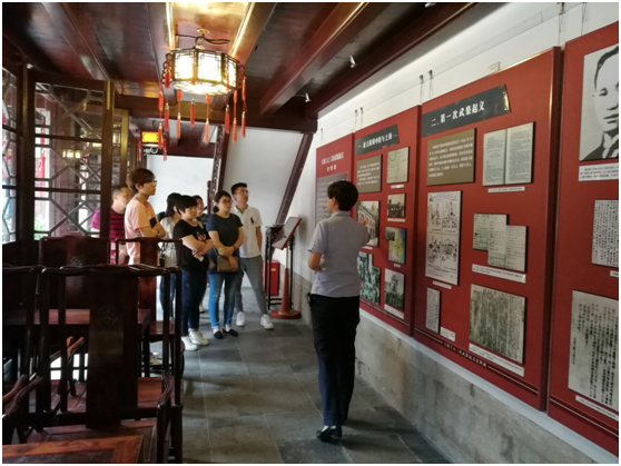 三山会馆始建于1909年,是上海唯一保存完好的晚清会馆建筑,也是上海工人第三次武装起义唯一保存下来的遗址。档案员们参观了三山会馆内的古建筑,包括门楼砖雕及古戏台等,并在讲解员的带领下参观了馆内常设的2个展览:一是上海工人三次武装起义图片史料展,学习了解1926年至1927年间上海工人在中国共产党的领导下,为推翻军阀政府在上海的反动统治举行三次武装起义,最终取得胜利的事件经过。二是上海会馆史陈列展,了解上海开埠以来从会馆逐渐发展到行业协会的历史进展。
