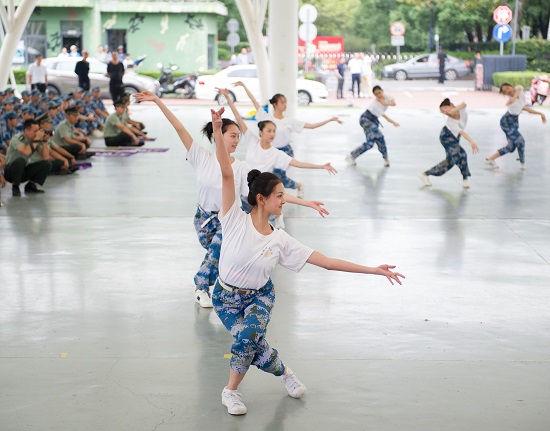 在接下来的汇报表演中,各个方队依次进行了整齐划一的队列表演、刚劲有力的拳术表演,特别是舞蹈学院方阵进行了具有上戏艺术特色的舞蹈表演,同学们用芭蕾、国标、中国舞等具有标志性的动作充分展现了我校学生的专业水平和精神风貌。