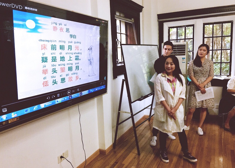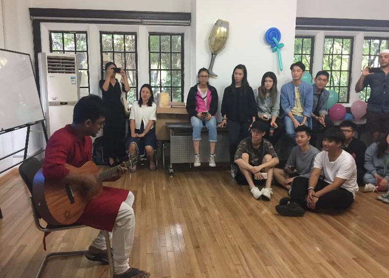 联欢会上,留学生教师和学生们各展才艺。印度同学Subesh的宝莱坞歌曲极具民族特色,从一开始的浅吟低唱到后来的热烈奔放,唱出了他对家乡的美好祝愿,带动了全场的气氛。法国华裔张斯斯同学自弹自唱的一首Quelqu’un m’a dit清新舒缓,委婉动情。意大利葛金鹰同学自创的普通话和上海话RAP铿锵有力,幽默风趣,high爆全场。留学生老师们饱含深情地朗诵了李白的《静夜思》,并以各自方言对诗歌进行诵读,不仅展现了中国传统诗词的优美,也让同学们了解了中国各地的方言文化,赢得全场的阵阵掌声。联欢会另外设置了游戏环节,还准备了月饼和披萨等美食,让同学们在愉快轻松的氛围中互相认识,加深了解。最后,联欢会在《友谊天长地久》的音乐里圆满结束。