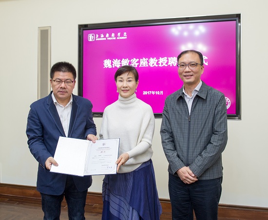 聘任仪式开始,宫宝荣副院长对魏海敏老师的到来表示热烈欢迎,党委副书记、院长黄昌勇向魏海敏颁发客座教授聘书,并赠送上海戏剧学院校徽。魏海敏老师发表了简短的致辞,她娓娓讲述了自己的成长历程,谈了自己的戏剧教育理念以及受聘于上海戏剧学院后将在京剧艺术表演、研究和人才培养方面展开的工作设想。与会领导和嘉宾们共同回顾了魏海敏老师在京剧艺术表演和研究领域的成就,以及其在推动青年戏曲人才的成长、两岸京剧艺术表演与研究、京昆艺术传承与创新方面所做出的重要贡献。市台办王立新副主任、校党委书记楼巍分别致辞。与会嘉宾们纷纷发言,谈论了魏海敏老师与学校的结缘及与学校合作的种种设想,正如魏老师自己所言,希望她能够在上海戏剧学院“重新出发”。最后与会领导、嘉宾和魏海敏女士共同合影留念。(文:宣传 图:佳奇 编辑:榕树)