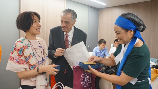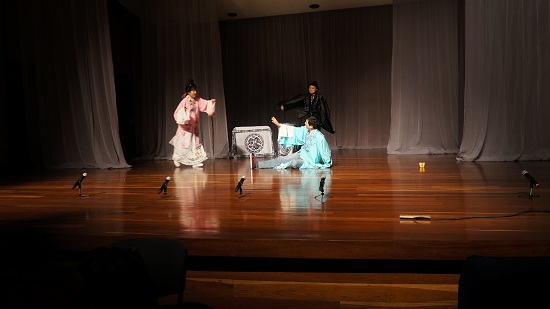 10月18日上午,戏曲工作坊在麦德林伊菲特大学的音乐系排练厅如期举行。担任主讲的巡演团徐佳丽、于翔老师两位都是中共党员,他们激情、耐心的讲解与现场陈星、李政宽两位同学的生动演示,博得了前来参加工作坊的学校师生的由衷赞叹,深深为师生们的讲解、演示所折服。麦德林孔院外方院长巴布罗先生曾经担任过哥伦比亚驻华大使,对中国文化和艺术有一种超乎寻常的热爱。他虽年过八旬,却早早来到了工作坊的现场。像小学生一样聆听于翔、徐佳丽两位老师的讲授,老人还风趣地对两位老师说:通过你们生动的讲解与演示,我现在学会中国式的“开门”了。工作坊使学校师生对中国戏曲的博大精深与生动细腻有了切身的感受和体验。