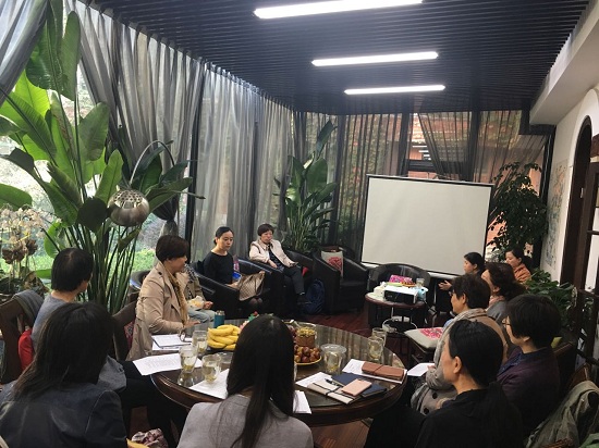 王苏老师介绍了我校妇女之家创建的基本情况,市教育系统妇委会领导和来参加会议的代表们进行了座谈。大家一致认为,在近几年的妇委会工作中,妇委会的领导注重从女教职工切身利益出发,对有困难的教职工不仅在身体的病痛上给予慰问,还能以朋友和亲人的温暖在精神上给予鼓励。上级妇委会领导极大的肯定了教工之家和妇女之家的建设成果,对妇女之家的品牌——“品读”七年近三百场的演出,在传播声音语言文化和传递社会正能量方面做出的贡献进行了表扬。