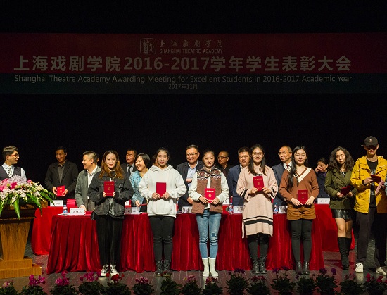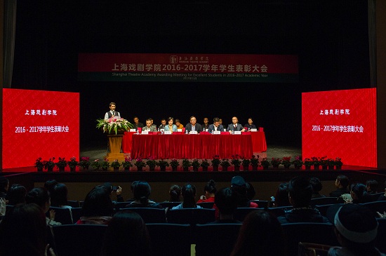 11月17日,上海戏剧学院2016—2017学年学生表彰大会在华山路校区端钧剧场举行。校领导楼巍、黄昌勇、胡敏、宫宝荣、张伟令以及各院系领导出席并为荣获各类集体和个人奖项的学生代表颁奖。大会由党委副书记胡敏主持,学工部、院系辅导员老师及获奖学生代表在主席台下就坐。