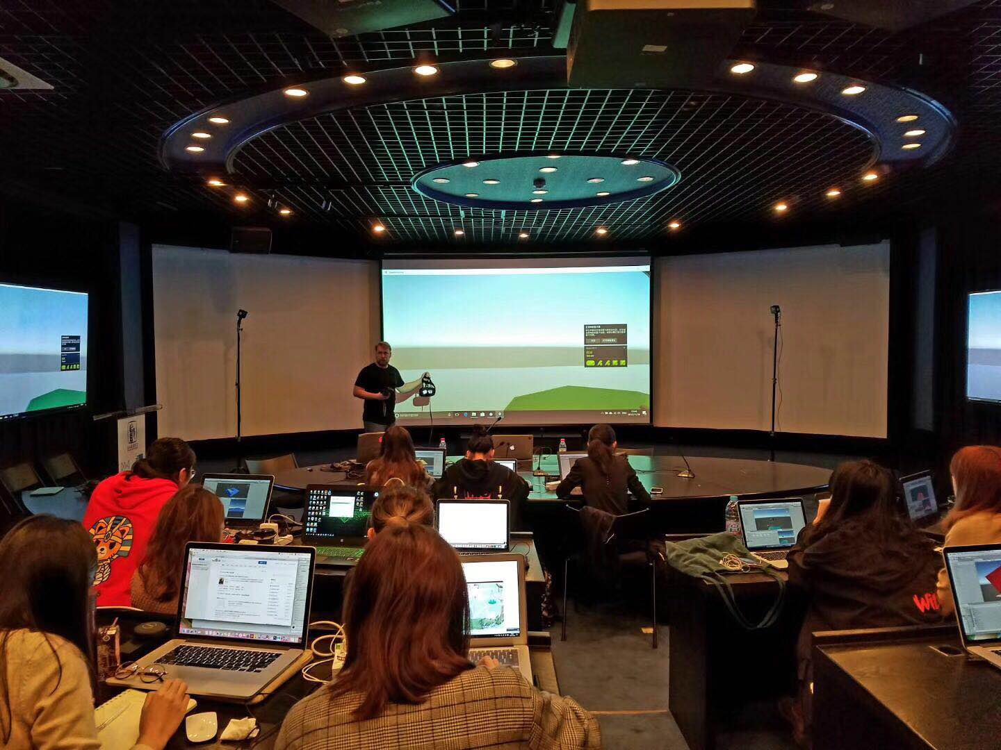 随着虚拟现实技术逐渐进入市场主流,为了推进学生专业技能的提高,我校创意学院于2017年11月15日起在虚拟实验室举办了新媒体演艺创新国际专家工作坊活动——“虚拟现实与交互声音设计”,旨在让学生虚拟现实场景的开发,掌握新媒体发展的主流趋势。