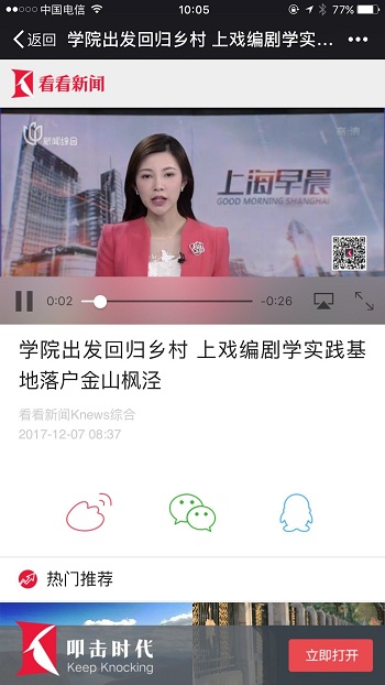 12月6日,我校师生在编剧学研究中心主任陆军教授、上海市综合艺术教育微电影项目负责人姚扣根教授的带领下,一行67人来到了位于上海金山区的枫泾镇参加了“中国编剧学践习基地揭牌仪式”,同时开展了“百·千·万字剧编剧工作坊”课程的采风活动。此次活动还有幸请到了上海市教育学会秘书长苏忱教授随行前往。