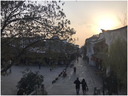 下午,我们游览参观了历史悠久的枫泾古镇。枫泾古镇,依水而造,但与其他人声鼎沸、商业气息浓厚的古镇不同的是,它古朴、静谧,甚至有种闲适的生活气。学生们穿梭在状元榜、月老园和琳琅满目的街市之中,肆意喧哗、尽兴玩耍,周人不会给我们任何打扰,我们也不会打扰到周人的生活,在这片土地上,大家都有充足的空间来享受生活带给我们的馈赠和欢乐。正如丁聪漫画陈列馆前那棵400年的银杏树和丁聪肖像画上的笑容所昭示的,枫泾所传达的正是这般古朴、温柔、热情的生活精神。