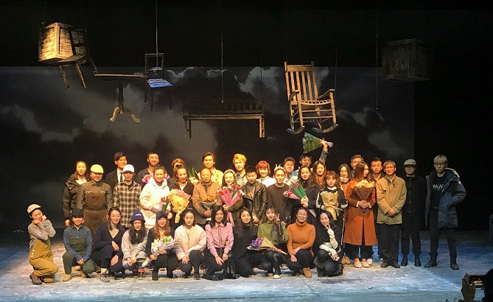 两部大戏《桥头眺望》和《油漆未干》演出期间座无虚席,老师和同学们观剧热情高涨,现场掌声热烈,好评如潮。其中,《桥头眺望》是美国剧作家阿瑟·米勒的代表作品之一,探讨的是蓝领阶层移民美国的困境。而《油漆未干》则是法国剧作家勒内·福舒瓦的作品,以凡高为人物原型,讲述一个无名画家死后的画作在巴黎卖到了天价,和他生前的贫苦和悲惨形成鲜明对照,画商们陆续来到他居住的小镇收购,引起各式骚动。惟独画家生前的徒弟,一个油漆工人,身为画家遗孀的一位女仆,在这场金钱的游戏中保持着该有的真正的情感。
