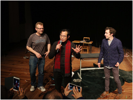 上戏和哥大编剧专业研究生交换培养项目迄今为止已经成功完成了三届,它是以上海戏剧学院编剧学学科带头人陆军教授和美国哥伦比亚大学教授、《蝴蝶君》作者黄哲伦两人互换学生的方式进行合作培养。每年哥伦比亚大学和上海戏剧学院各派出两位学生到对方的学校进行学习。正如本项目的中方导师陆军教授坦言:这对于上戏来说既是次机遇也是场挑战。面对来自世界一流大学的学生,如何让他们能在上戏的学习中真正有所收获,如何让他们对我们的教学感到满意?为此我不仅要精心安排最合适的课程,而且还安排了每节课都有几十位上戏研究生陪同跟读,同时还定期组织采风和交流活动。经过近三个月各方面共同的努力,我们获得了美国学生的深切认同与肯定,他们也在为期三个月的学习生活中收获良多。与此同时,中方学生也在共同学习与交流的过程中收获了新颖的戏剧观念与对生活的看法。如麦克斯·蒙迪和戈登·佩恩对戏剧真实情境和空间的不懈追求与强调,即使在本次演出落幕后仍会在我们的脑海中留下印象,并在不经意之间悄然影响我们的创作轨迹。