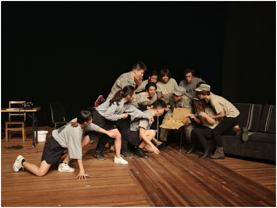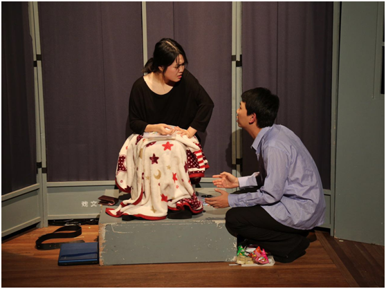 参与两部作品演出的演员大部分都为编剧专业的学生,甚至不少同学还是第一次登台亮相,面对近130位到场的嘉宾、教授和观众,他们出色的表演很好地表现了剧本的原貌。这很大一部分原因是两国学生文化交汇的成果:哥大学生在排练过程中向上戏学生阐述剧作用意和空间安排,上戏学生则尝试寻求剧本中一些美国元素的本土化表达,最终在双方的共同努力之下呈现出了一场易于中国观众接受的演出形式。《许是明日》风格偏压抑,《走进军区》风格偏凌厉,但都较好地向观众传达了剧作的精神内涵。
