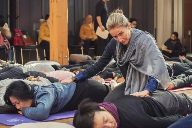 1月1日,凯瑟琳·菲茨莫里斯女士和索尔·科祖贝先生在上戏图书馆四楼举行了一场公开讲座,就“菲茨莫里斯声音训练方法”的核心内容进行了介绍。上海戏剧学院表演系主任何雁介绍,菲茨莫里斯女士的首次中国之行是多方共同的努力。在为期九天的训练课程中,菲茨莫里斯女士和索尔先生与各自的助手交替训练两个班级,围绕其声音训练方法的核心概念“解构”与“重构”,对学员们进行了循序渐进的训练。在“解构”阶段,老师们通过十四个专门设计的姿势,引领学员找到身体的“震颤”,让学员在释放掉肌肉紧张的同时,允许并保持身体的自由呼吸,进而增强对身体各部位,尤其是脊椎的感知力。在“大师班”后半段,训练逐渐引入文本,增加了对手之间交流的训练等。而对“呼吸”的意识,贯穿“大师班”课程的始终。