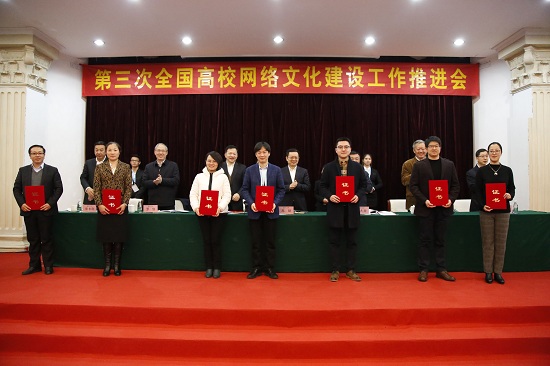 会上举行了在第二届全国大学生网络文化节、全国高校网络宣传优秀成果推选展示活动中(简称“一节一推选”)优秀作品颁奖典礼。我校在微电影征集活动中表现突出,电影电视学院方虹老师指导的学生尚蔚作品《心跳》荣获一等奖,侯咏、詹新、严�晔老师指导的学生王燕玲、赵安露、张好、厉方宇、逯畅作品《生日》荣获二等奖,并作为获奖高校代表上台领奖。其中一等奖作品《心跳》以展板形式进行了现场展示。