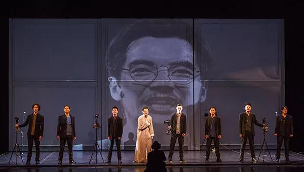 舞台上用影像展现了中国戏剧创始人李叔同,剧作家田汉,中央戏剧学院第一任院长欧阳予倩,上海戏剧学院第一任院长顾仲彝等多位剧作家,田沁鑫说:“我们可能受到了老艺术家的加持和呵护。”