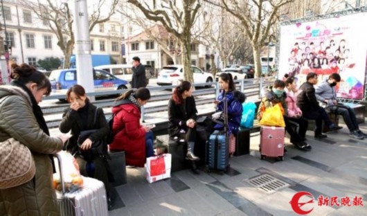 图说:考场外还有不少外地来陪考的家长 新民晚报记者 郭新洋摄