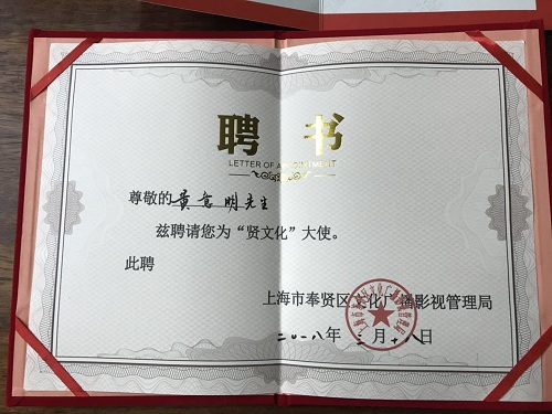 图为“贤文化”大使聘书